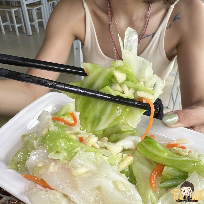 燙青菜(60元)高麗菜脆口清爽,帶有蒜香,搭配麵食很不錯喔。