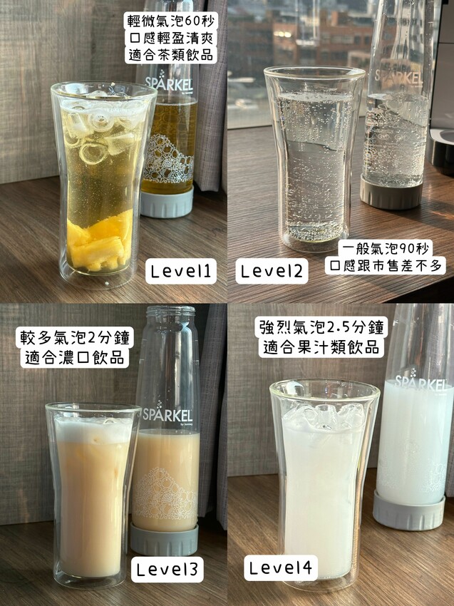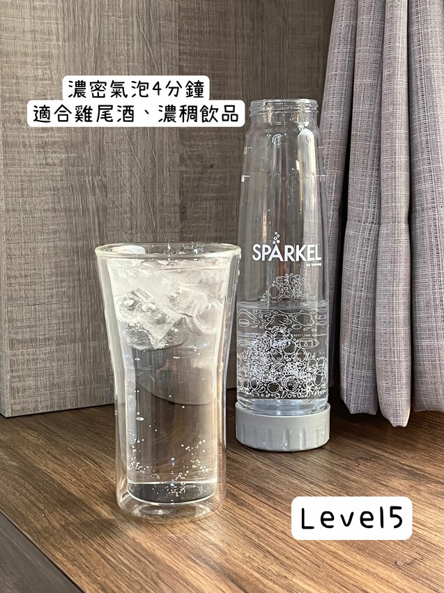喝起來清泡刺激感很微弱,清爽、順口,很適合搭配茶類飲品 - Level2: 輕微氣泡90秒