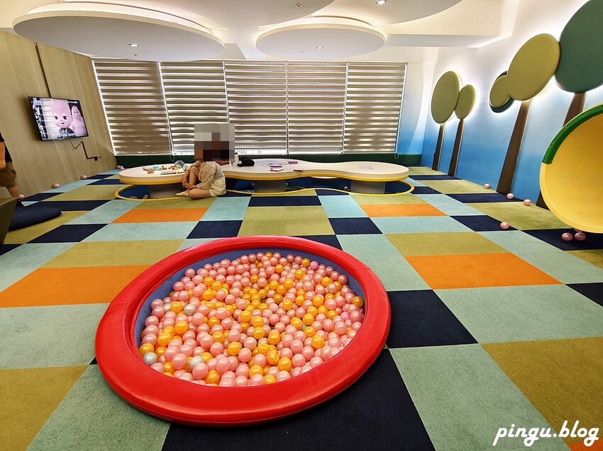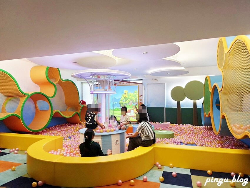 除了戶外設施之外,室內也有親子遊戲室,夏天戶外太熱可以躲在冷氣房內玩遊戲~ 球池、互動式遊戲、還有可以爬上爬下的設施,都讓小朋友們玩到欲罷不能~~