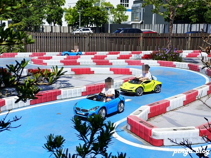 另一邊有小小孩最愛的電動車,開著車到車道內繞一圈超好玩~若小朋友太小有遙控器由父母遙控,這區限6歲以下的小朋友玩耍唷!!