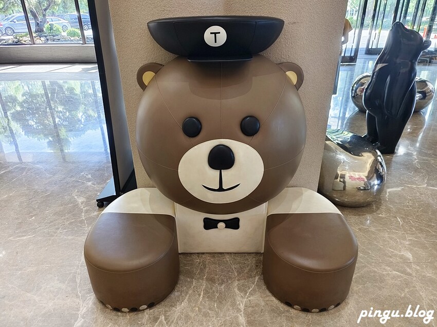 休息區還有一隻可愛的小熊座椅,雙手都是座椅可以坐著休息~