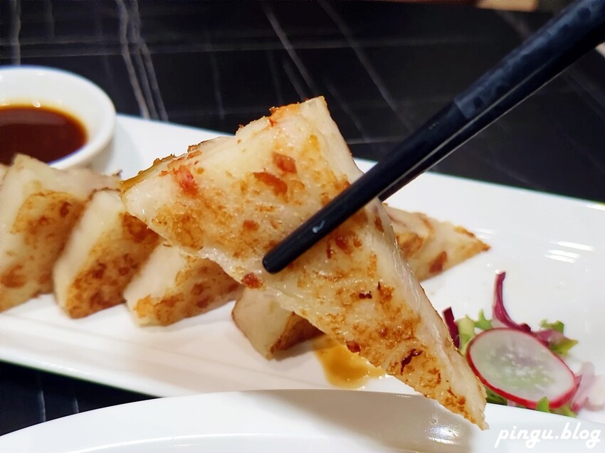 港式蘿蔔糕可謂是經典的港式點心,外酥內軟的口感,蘿蔔與臘腸的風味在口中綻放,煎至外皮微微焦黃,內裡則保持了濕潤與柔軟,蘿蔔的清甜與細膩的口感完美融合,讓人一吃難忘