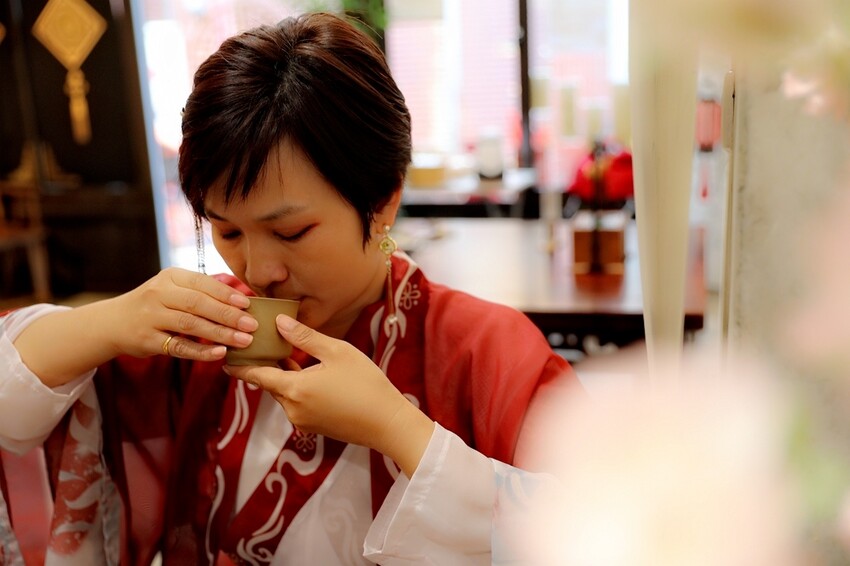 穿著漢服品茶享用茶點 一條龍的沈浸式體驗 讓人很有穿越時空的感覺