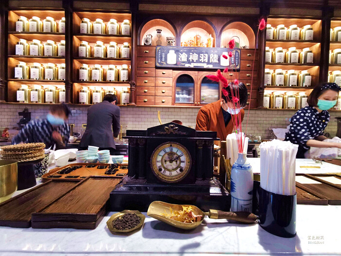 尤其是櫃台桌上放著各式的復古器具及擺飾,加上後方的茶葉罐,彷彿像走入中藥行一樣,時尚中又帶點復古的感覺,難怪會大受歡迎。
