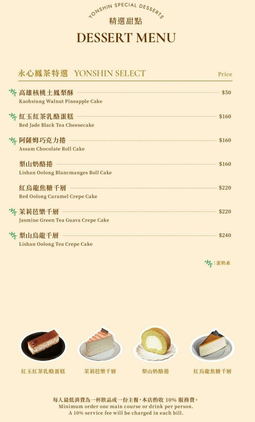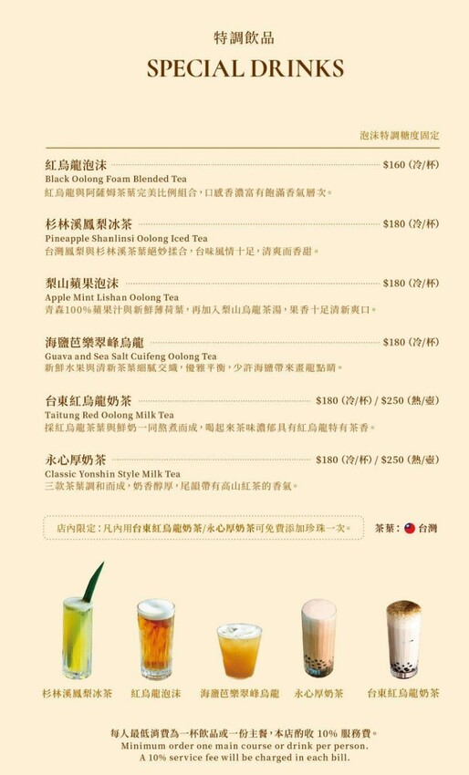 永心鳳茶 菜單價位