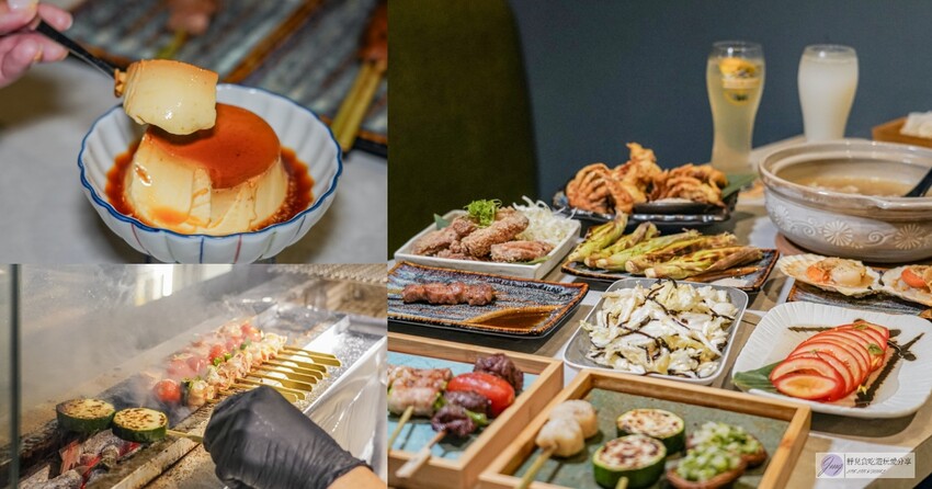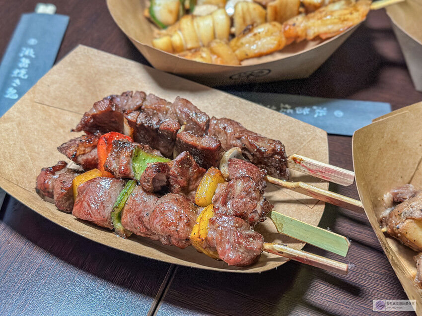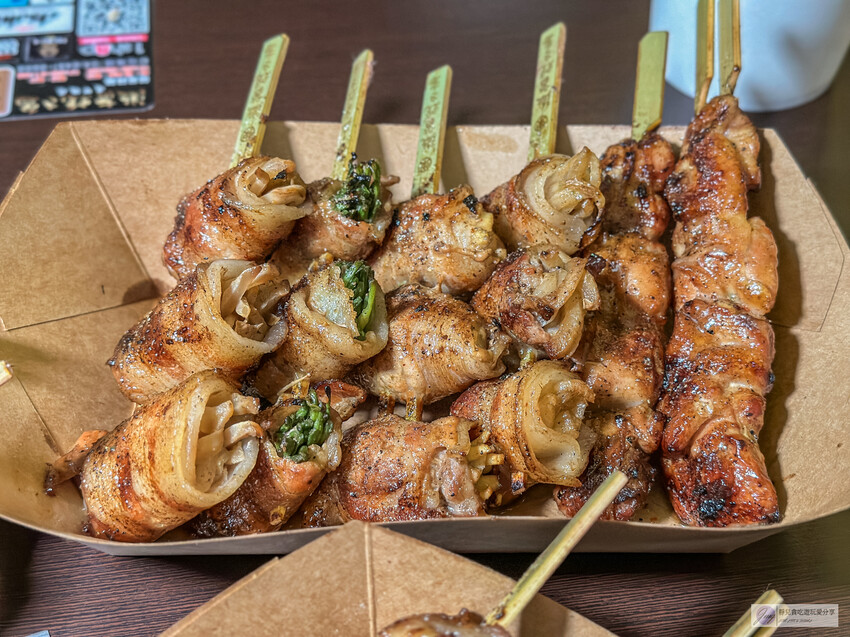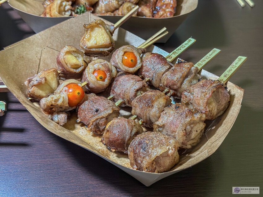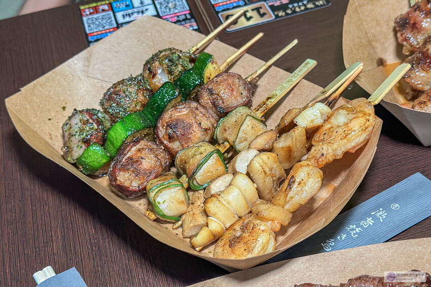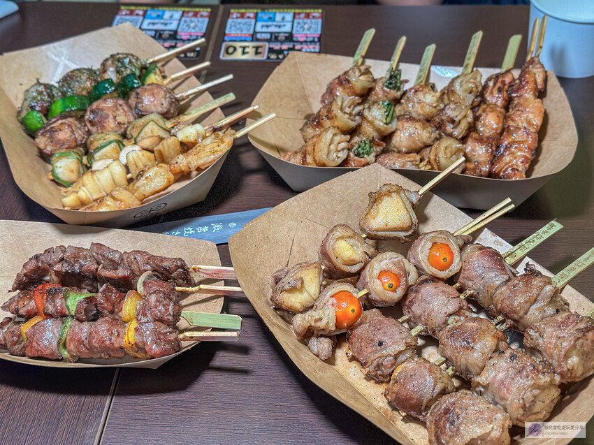 這裡的創意串燒花樣繁多,像是番茄包肉、杏鮑菇串、麻糬串等,肉串包覆著蔬菜或水果,既清爽又美味,搭配啤酒更是絕配。