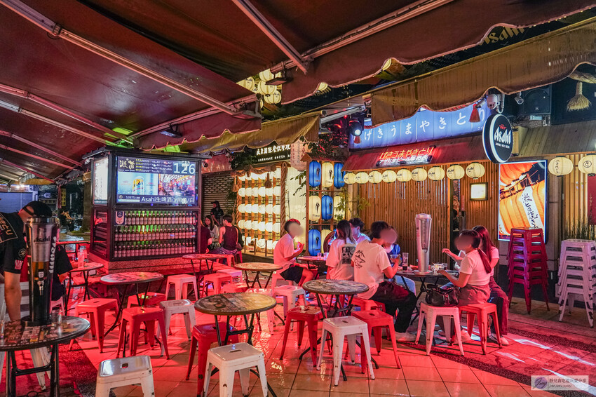 這條街的氛圍充滿日式風格,紅藍綠色燈光營造出超有氣氛的場景,讓人忍不住想要多拍幾張照片。