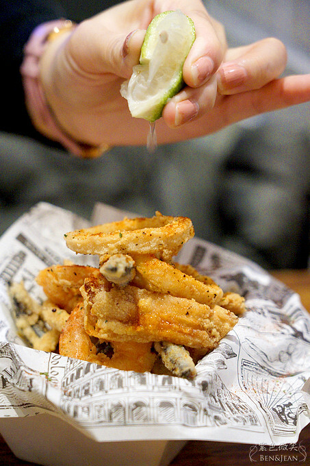 酥炸綜合海鮮,裏面有鮮蝦、中卷、丁香魚。是用杜蘭小麥粉裹粉下鍋油炸的,這道讓我們有小小驚豔到耶,非常香酥可口!