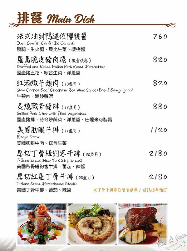 佛斯特旺餐酒館 菜單價位