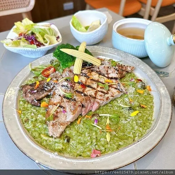 戰斧豬青醬燉飯使用手打青醬燉煮,一整個香氣十足!