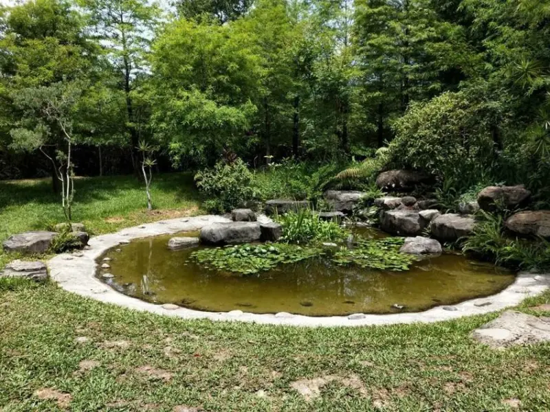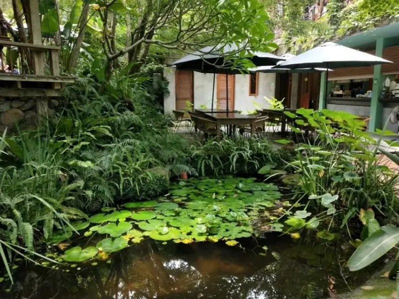 ▼鳥vs人戶外座位區的另一角,有一個生態小池塘