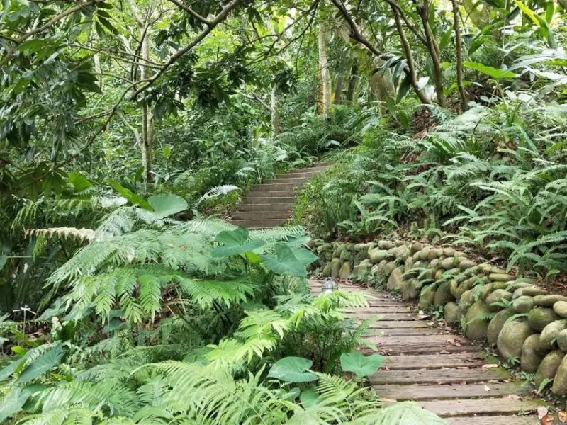 綠意盎然的竹林步道,可以順著這條茂盛竹林的步道,走到下方的天堂古堡區