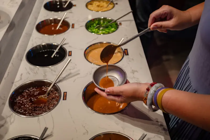 ▲▼設有自助吧,提供多樣的配菜和醬料,方便顧客自行取用。