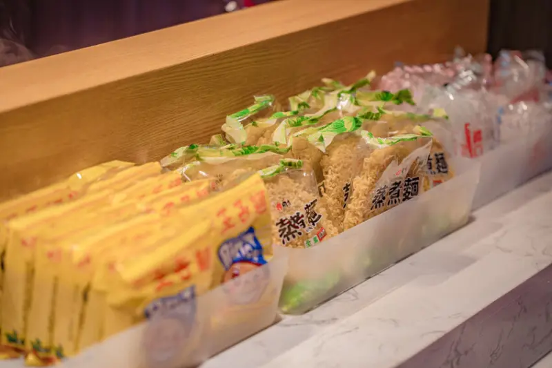 ▲▼自助區的各種麵食,有王子麵、蒸煮麵、龍口冬粉。