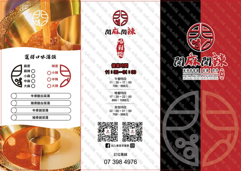 開麻開辣菜單