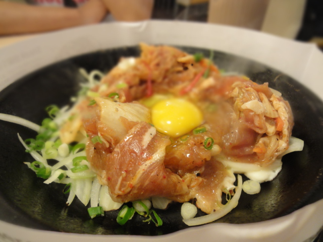 中間的蛋黃還是生的~ 攪拌後利用鐵板餘溫將它炒熟
