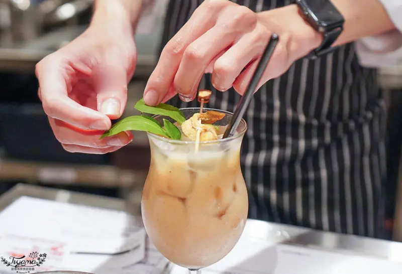 梅子芭樂使用白龍舌蘭酒作為基酒,與甘梅粉、芭樂汁調合,梅香甘甜與芭樂汁好搭,就像喝特調果汁一樣順口,用芭樂果乾與羅勒裝飾,最後也別忘了還可以把果乾當甜點吃掉。