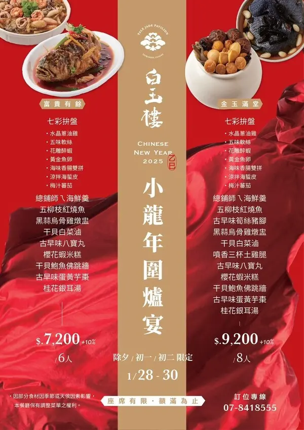 白玉樓經典台菜的年菜菜單也出爐囉!!喜歡的朋友可以提前預訂。