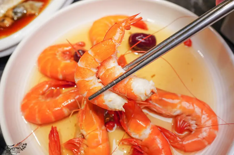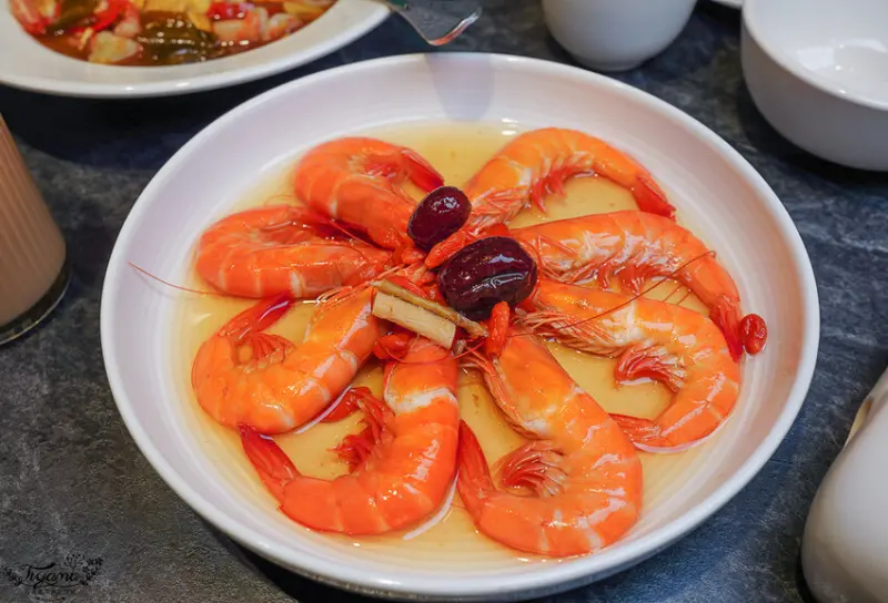 在菜單看到花雕醉蝦圖片就好誘人,送上桌與圖片相似度百分百,鮮蝦不但大尾,花雕醃醬風味也好迷人,看到枸杞、紅棗、花旗蔘…等中藥材就知道用料實在。