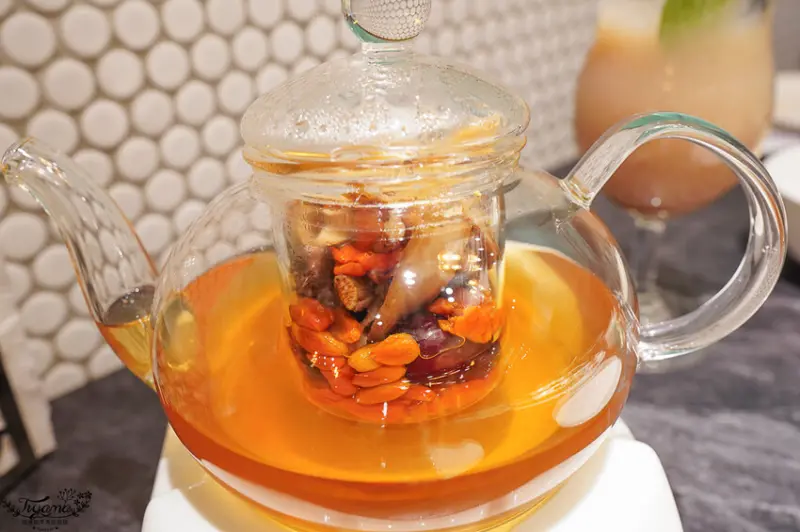 風雅熱茶我們選了養生的花旗蔘養生飲,有枸杞、紅棗、人蔘鬚,以前兒時媽媽也會為爸爸調配這樣的養生飲品來補元氣,香味濃厚令人懷念!!