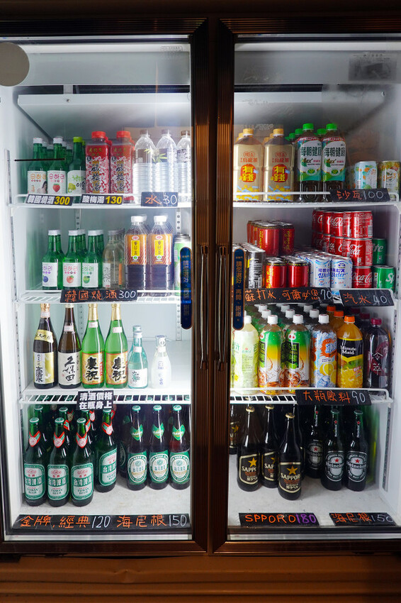 酒水的選擇也十分豐富,無論是想喝韓國酒、日本酒,台啤或海尼根,冰箱裡通通都有。每一款飲品都有明碼標價,讓人可以輕鬆選擇、不用擔心結帳才被坑的問題。(未成年請勿飲酒.酒後請勿開車)