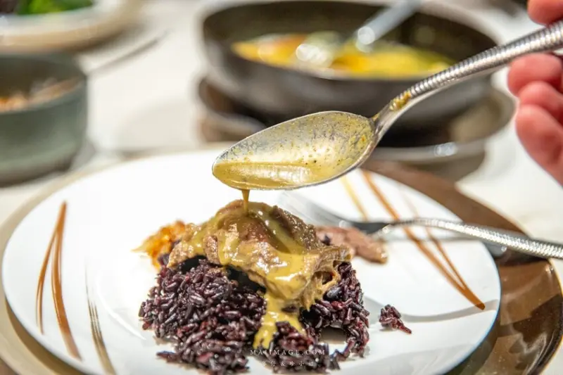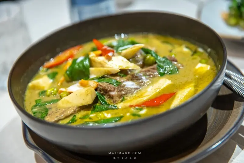 接下來這一道是讓我們最驚艷的一道經典泰式綠咖哩,但裡面的牛肋骨可是費時72小時燉煮過的狠角色。