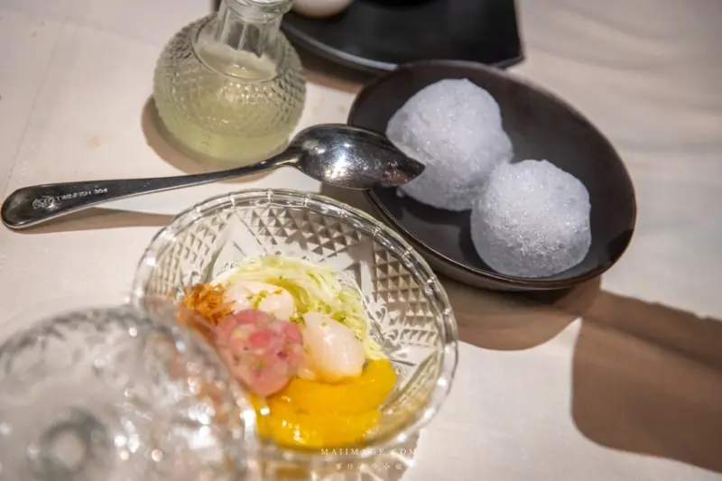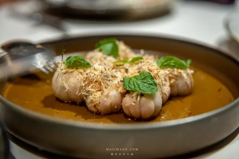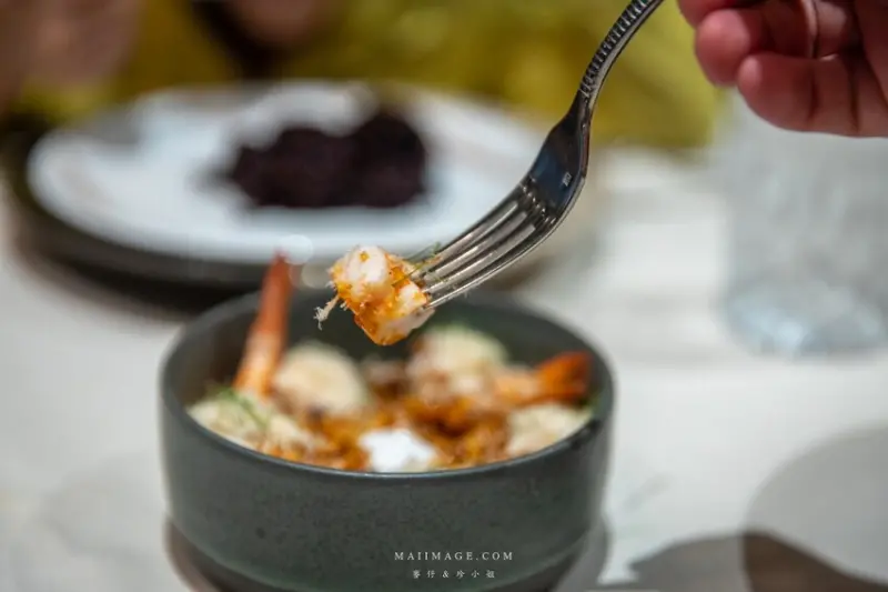 蝦仁切塊吃起來典雅大方,跟著調味料一起吃鹹香中又帶點柚子的微酸,尾韻再帶出一點辣度實在是太厲害。