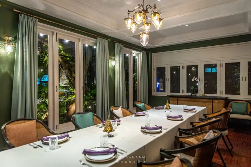 這次來到泰國曼谷我跟珍小姐都很期待的一餐就是這間位在SiLom區的Benjarong Bangkok – Baan Dusit Thani,這間Baan Dusit Thani Hotel集團旗下的曼谷貴族泰式料理,整間餐廳就位在豪宅莊園的主建築中,具有歷史的建築結合了珍貴古董傢俱和油畫、燈飾裝飾氣氛滿分。餐點部分水準相當高。從前菜、主餐到最後甜點沒有一道讓我們失望,視覺與味覺的雙重饗宴實在非常滿足的一晚。夜晚的Benjarong Bangkok好美,下次要換白天來感受一下截然不同的魅力。