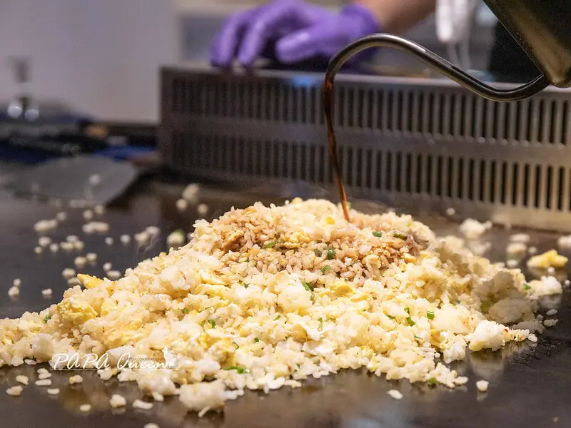 主廚笑著說接下來讓大家吃飽…炒飯登場,採用不同的蛋料理方式來展現經典蛋炒飯,先將大量的蛋炒成蛋酥,另一部分的蛋和飯一起拌炒讓每一粒米都裹上蛋液,大量青蔥與最後淋上醬汁,黃金蛋炒飯登場登場…喊著已經飽到天靈蓋的我還是忍不住又繼續吃下去!!