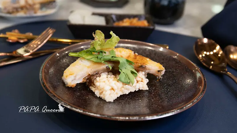 鍋巴是我一開始就很期待料理,沒想到是要搭配鮮魚,淋上特製紫蘇梅醬與生菜整體口感是清爽,魚刺已去除但還是建議吃的時候還是要小心避免小細刺喔!