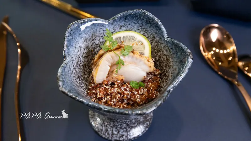 日本帆立貝完整取下口感非常鮮甜,底下則是搭配藜麥是一道以原味主體的料理,不只兼顧飽足感更有豐富膳食纖維,與營養滿分。