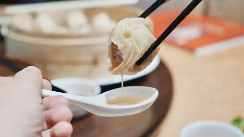 芙蓉園的北京小吃超好吃!一定要點「小籠湯包」,記得要輕輕夾起,一戳就破的薄皮小籠包,一咬下去就爆汁,小籠包裡的湯汁真的好美味,熱騰騰的小籠包鮮嫩多汁呀!