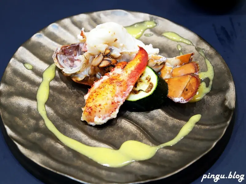 嚴選加拿大的波士頓龍蝦,肉質紮實且甜美,直接吃就很好吃,也可以搭配一旁的南瓜醬,加上刨上烤過的夏威夷果仁,增添了堅果的香氣~
