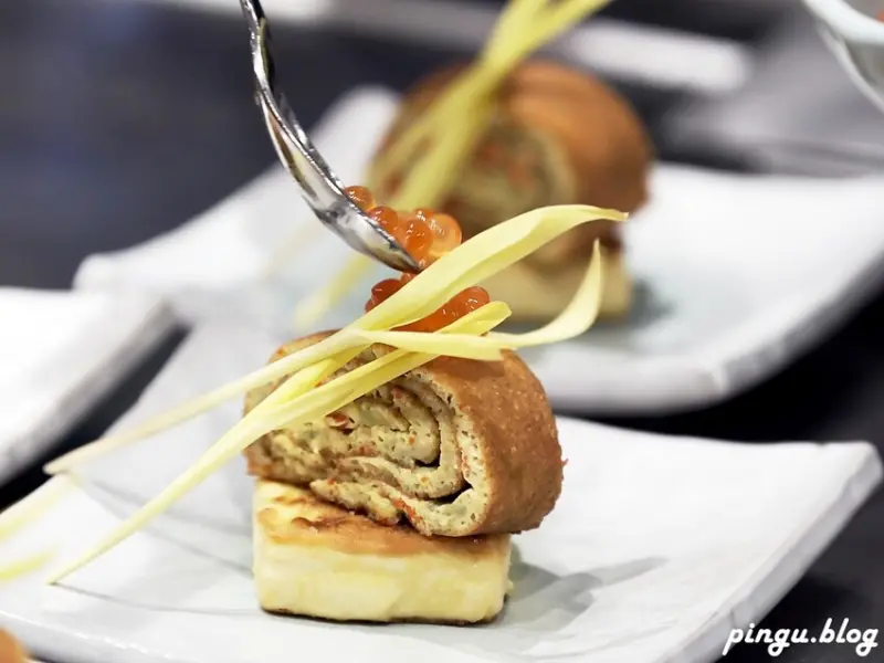 蛋捲中帶有龍蝦膏的鮮美,以及起司的柔滑口感,加上嫩豆腐的軟嫩及鮭魚軟的爆漿滋味,豐富又多層次的口感相當引人入勝~