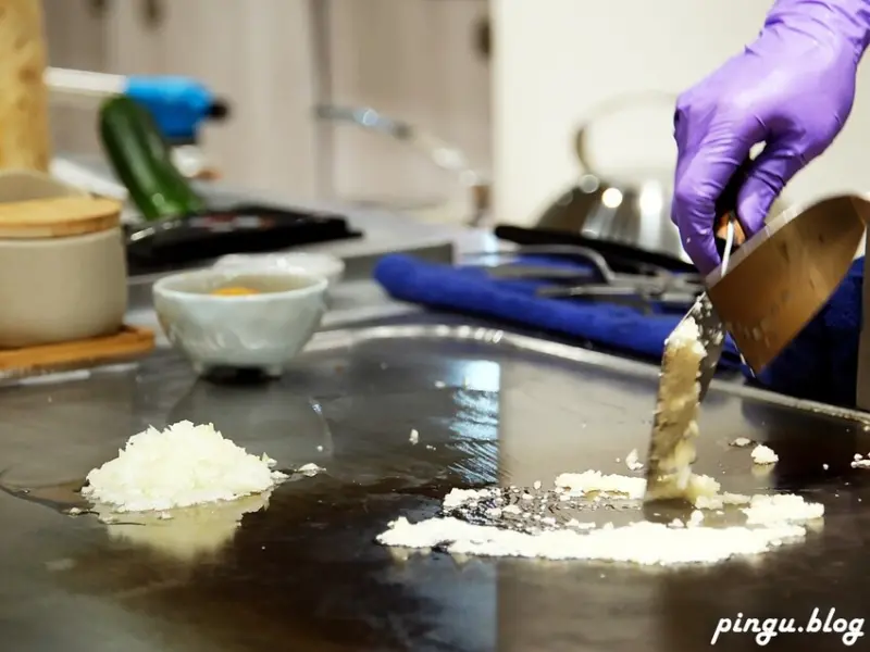 明水然.樂的鐵板炒飯相當特別,會用兩種不同的蛋的炒飯下去製作,第一種是先炒蛋酥,第二種是將蛋和飯一起拌炒,最後兩者結合炒出黃金炒飯,粒粒分明的炒飯超香,若沒吃飽師傅會多給一些炒飯唷~