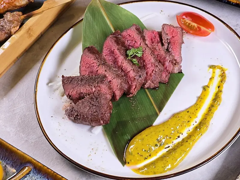 很酷吧!在居酒屋也能吃到美味的翼版牛排,且在擺盤上一點都不輸給專業的牛排館呢