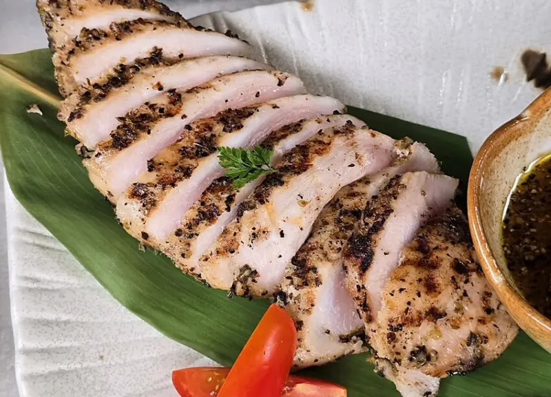 吃起來的口感有點類似舒肥雞肉那樣軟嫩,但小凉個人又覺得比舒肥雞肉要來的在嫩口一點,且單吃風味就很足,但也可以沾上特製醬料來點不一樣的風味唷!
