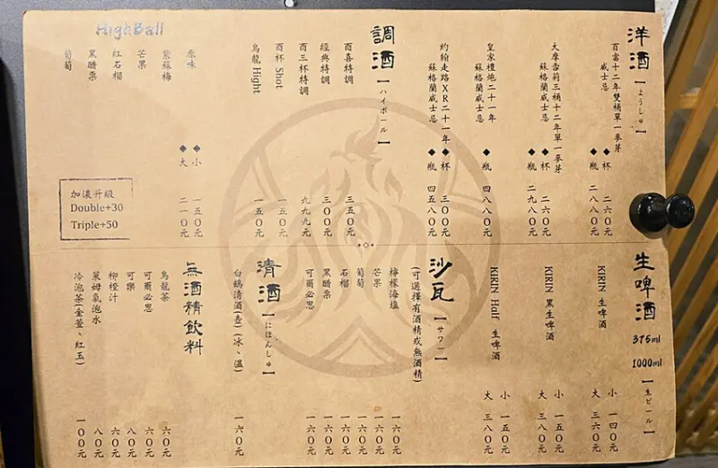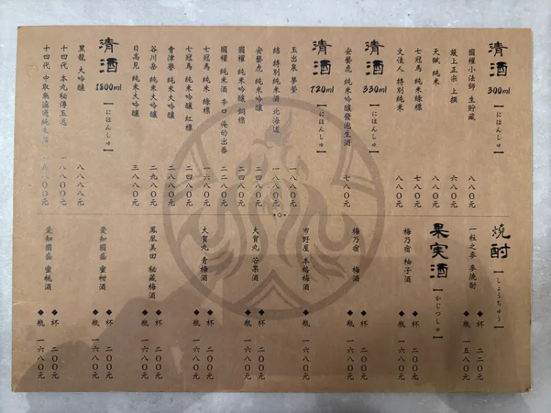 飲品部分有很多種日本清酒可以選擇以外,還有洋酒、調酒、生啤酒、沙瓦及無酒精飲料!在酒類的部分亦可告知自己喜歡的味道、濃度再由服務人員來推薦唷!且這邊可以寄酒,就算喝不完也可以下次再來小酌唷!