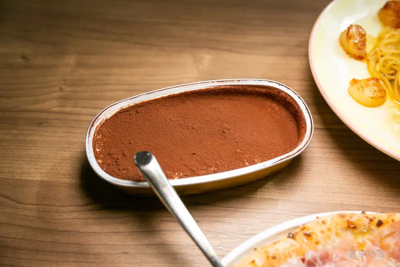雖然因為朋友顧著看店長做披薩導致這個提拉米蘇有點融化了,但還是非常好吃~因為這麼說啦,底下的手指蛋糕吸滿了更多的精華所以更好吃了(笑