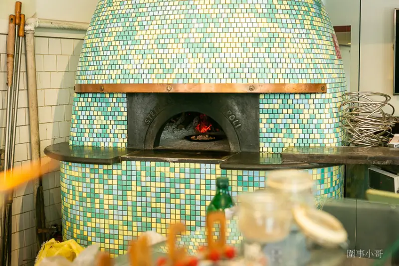 店長看我們對這窯烤爐非常感興趣,(沒錯,我正陶醉在窯烤爐外頭那一塊塊非常有質感的馬賽克磁磚上!超美的呢!)就跟我介紹了一些這座窯烤爐的特色。