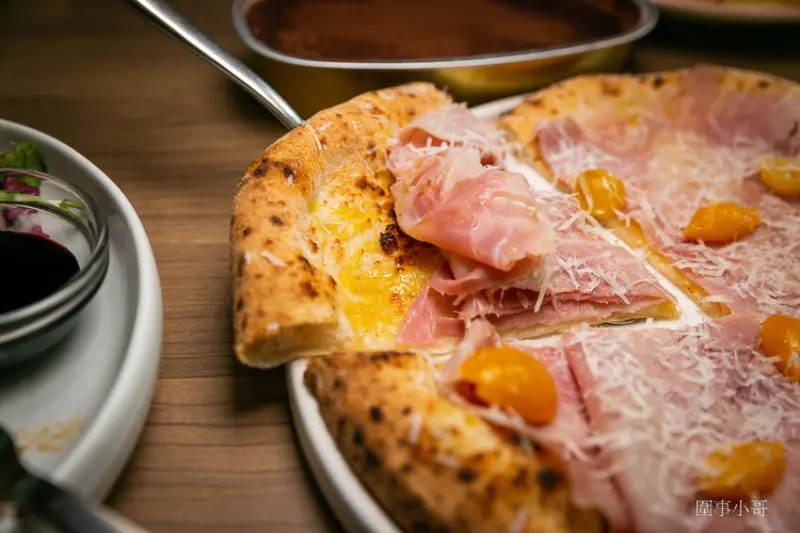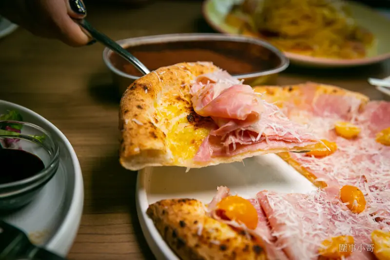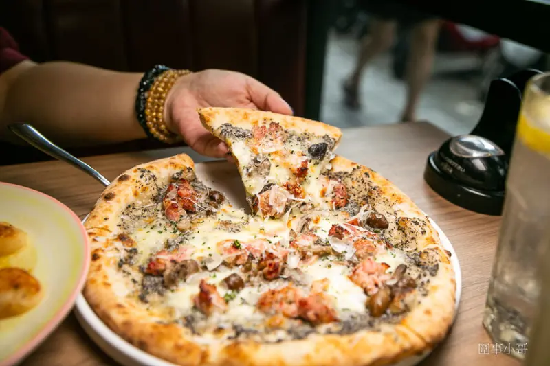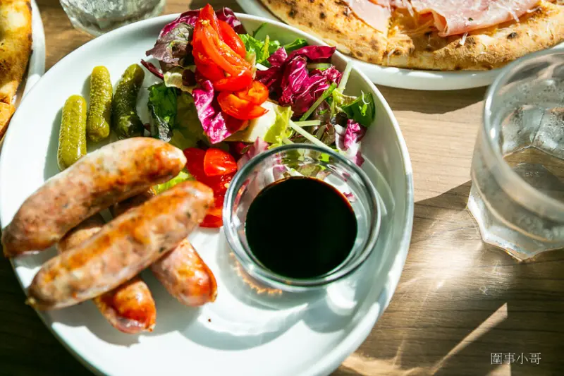 吃起來還會牽絲~而且口感非常的溫潤!而且眼尖的同學應該認出來了吧?放在肉披薩上面的肉肉跟我們剛剛吃光的那盤豪華肉拼盤佐醃漬幼條瓜裡的香腸是一樣的喔!