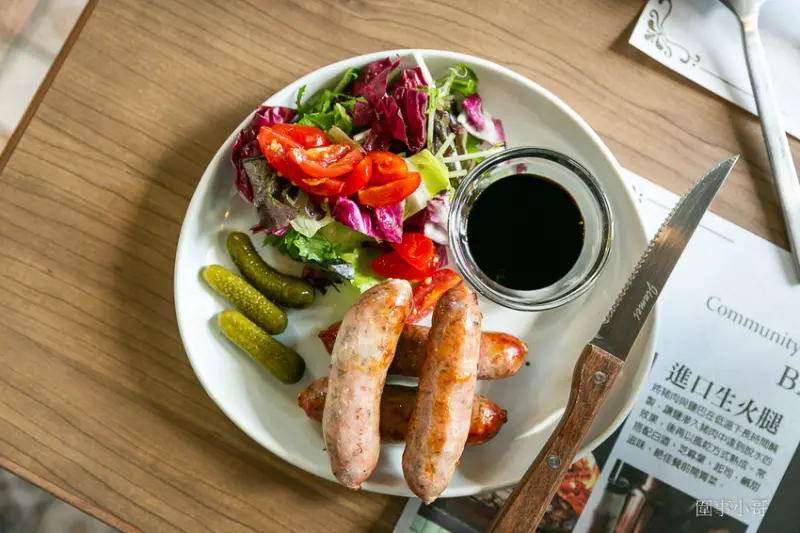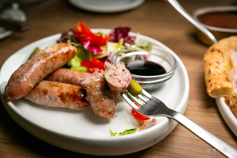 嗯,剛端上來的時候我得說我一時間找不到肉……說好的豪華肉拼盤呢!!??服務員小姐姐笑著說這可是用嚴選的豬肉加上南法普羅旺斯的綜合香草製成的美味香腸喔!