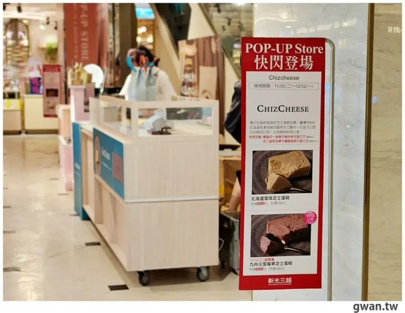 ChizCheese 第5種起司蛋糕首發快閃就在台中新光三越,快閃時間從2024/11/5~12/2為期一個月,櫃位就在B2手扶梯旁,一下來轉個彎就會看到