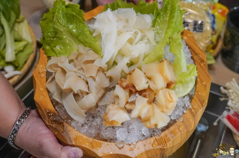 手工花枝滑、無毒白蝦、鮮甜蛤蠣、香脆鴨腸、軟嫩沙巴魚、鮮嫩牛百頁、珍珠雪螺肉、QQ小花枝