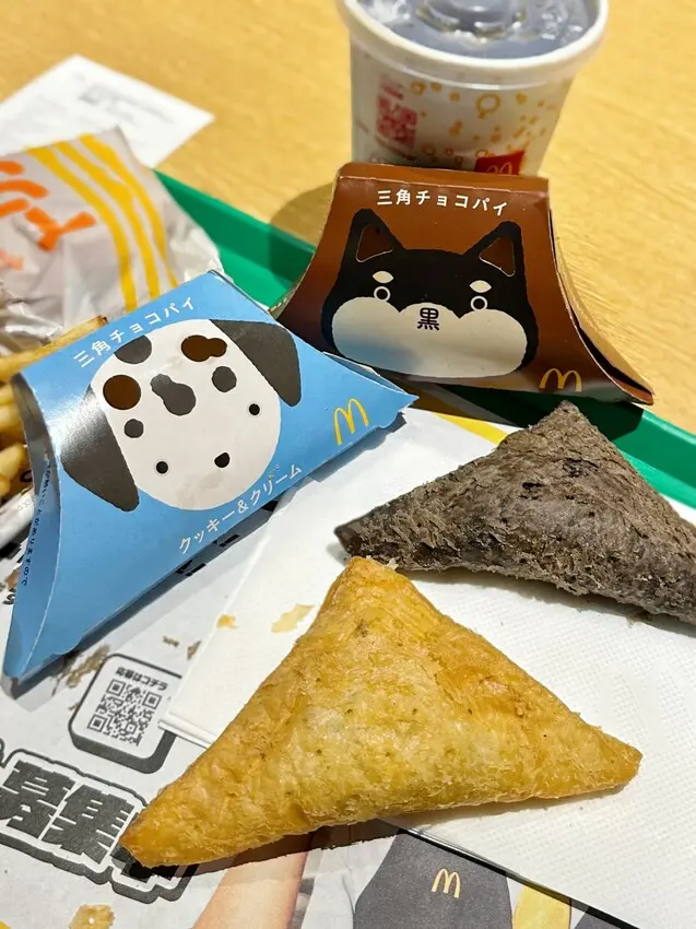 來到日本當然要衝一波麥當勞,不得不說,最近推出的甜點三角派真的很好吃,這次的包裝是很可愛的黑柴犬跟可愛的大麥町狗