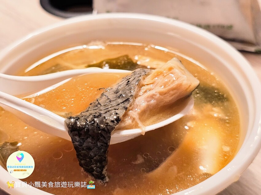 在用餐區旁邊有提供鮭魚味噌湯,採自助式投幣取餐的方式。此外,還有古早味的冬瓜茶、紅茶和綠茶,每包只要10元,非常適合搭配生魚片一起享用。