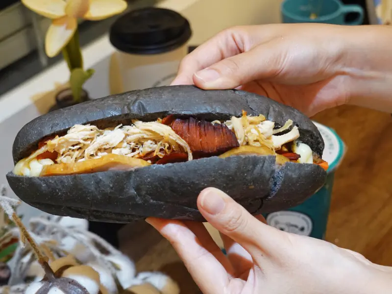 外皮呈現黑色的竹炭麵包,選用食品級竹炭粉製作。