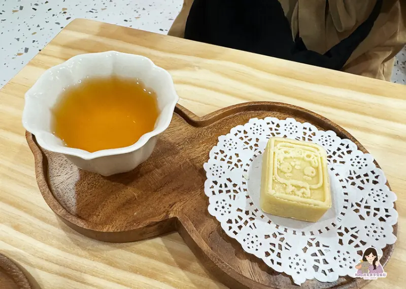 Ruby品嚐了一杯熱茶(金萱茶)以及一塊綠豆糕或鳳梨酥,