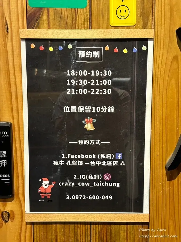 店門口的大型孔盤燒裝飾非常吸睛,還貼心提醒顧客採預約制營業。營業時間主要是晚餐和宵夜,從晚上6點到10點半。