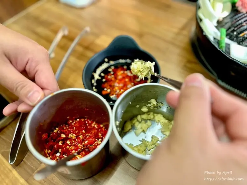 除了店家特製的醬汁外,還附有辣椒和蒜頭,顧客可以按照自己的口味自由搭配,增添風味。